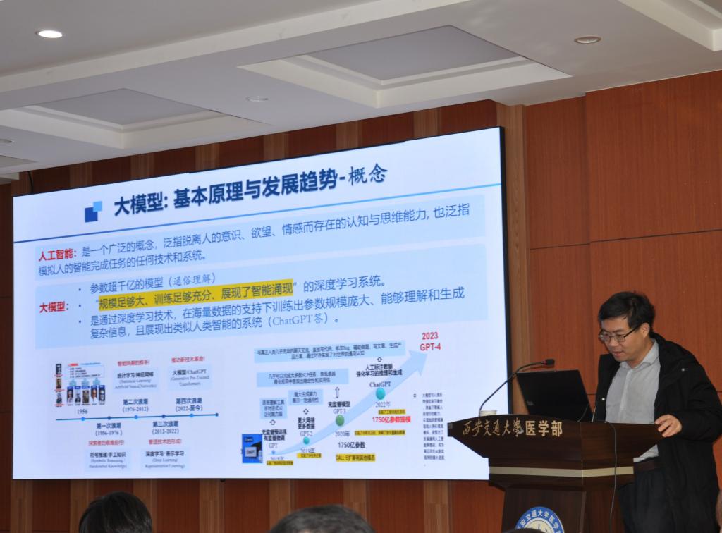 本次会议特邀西安交通大学数学与统计学院教授、博士生导师,大数据算法与分析技术国家工程实验室区块链创新技术研究中心主任徐颂华教授作《大模型时代的智慧医疗》报告。徐教授以大模型的基本原理与发展趋势为脉络,深入浅出地介绍了大模型的训练过程、科学基础、构成要素等模块,为参会人员带来了新的视野和思路。